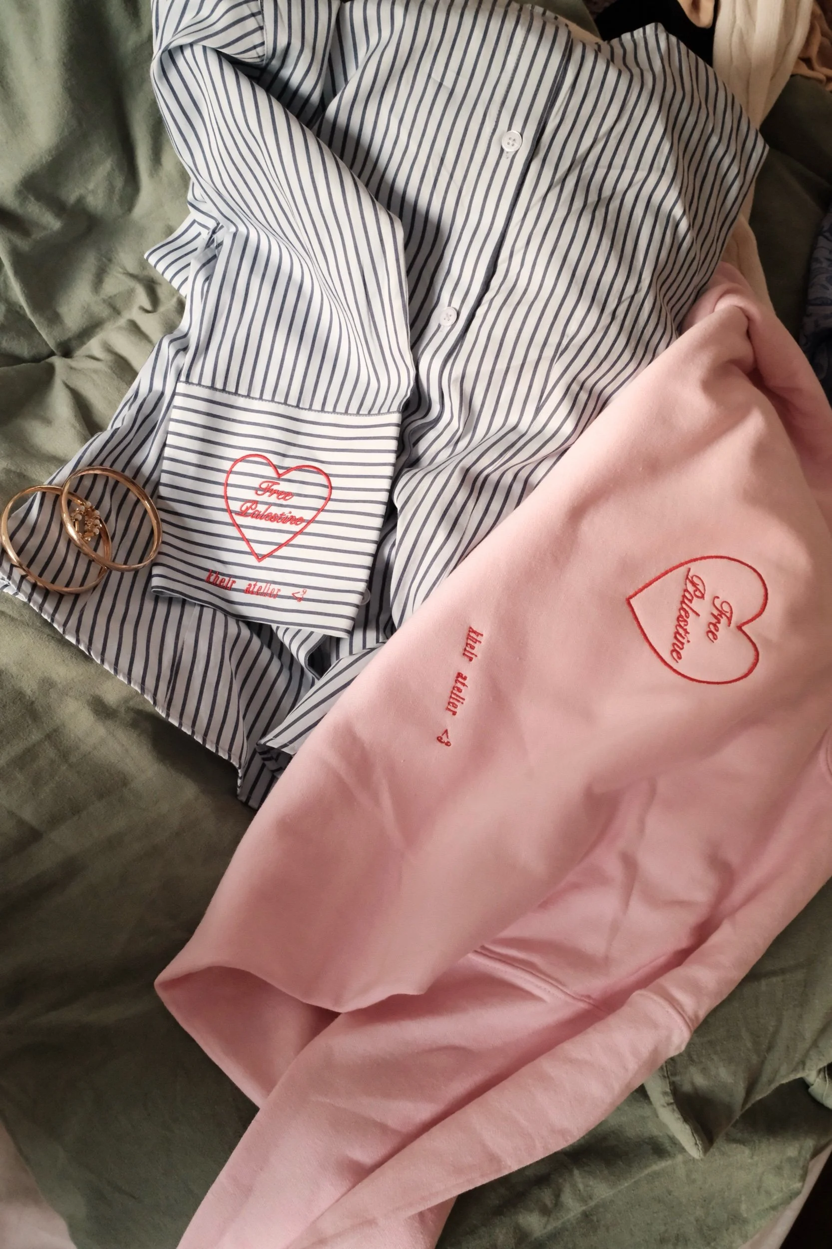 Free Palestine sweatshirt £38.00 The Love Letter Abaya £125.00 Custom Embroidered Abaya £55.00 Rush Embroidery Service £10.00 min an nahr ila al bahr £45.00 Freedom 4 Palestine £45.00 Custom Bag £15.00 Live Embroidery Station £0.00 Sold out