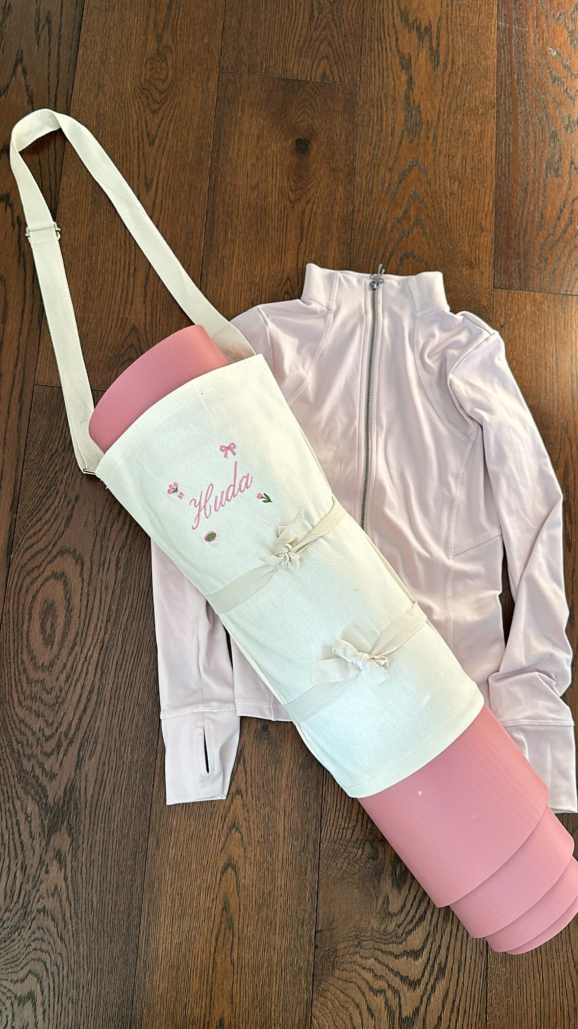 custom embroidered canvas bouquet / yoga / prayer mat bag